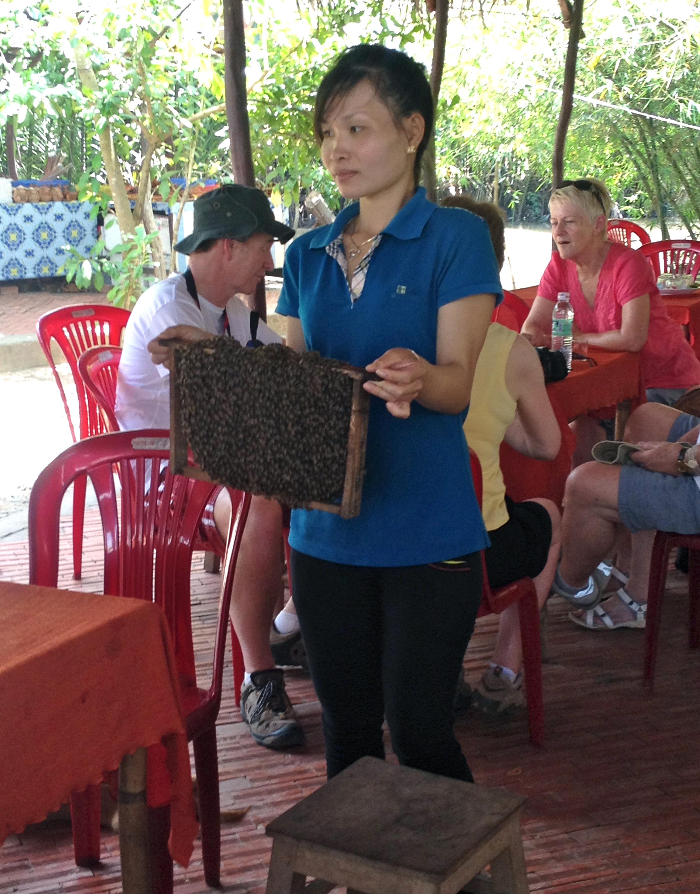 Next, everyone boarded a larger boat and headed to another family compound for lunch. Our tour company had automatically booked us for the “upgraded” lunch that was very well-executed, especially when compared to reports by others in our group that the standard lunch was basically a of bowl rice accompanied by more fruit (yes, they separated us so the others wouldn’t be jealous, but we spilled the beans and showed photos when we re-grouped after eating).